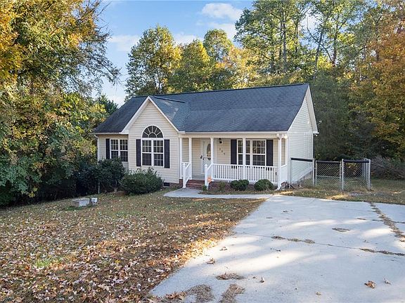 Beautiful One Level Home on 1.7 Acres is MOVE IN READY! This 3 bedroom, 2 bath home features fresh paint throughout, newer laminate flooring, a large living room with vaulted ceilings, stainless steel appliances, a fenced-in back yard with privacy, a rocking chair front porch, a back deck perfect for grilling, and a wired outbuilding for additional storage in the back yard! Larger primary bedroom with dual vanity in primary bath. Don't miss the opportunity to make this your home! Scheduled your showing today!