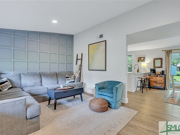 Step inside one of the best Windsor Forest's Mid-Century + Modern homes with fresh curb appeal and a fully updated interior! As you enter the home you are greeted by vaulted ceilings, natural light, and a custom detailed wall. In the kitchen you will find stainless steel appliances, white marble countertops, and a breakfast bar that overlooks into the dining space. Sliding glass doors in the dining area open up to the fun and inviting patio, perfect for entertaining guests and enjoying a nice Savannah day in the spacious, fully fenced in back yard! This home features 3 bedrooms, 2 bathrooms, and a bonus/flex space to be used as a larger primary bedroom, home office, playroom, etc. With custom bamboo blinds and contemporary finishes throughout the home, this is not one to miss!