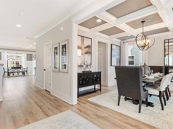Luxurious family style. The Radcliffe s impressive, covered entry and foyer open immediately onto the gracious formal dining room and spacious family room. The well-equipped kitchen overlooks a bright casual dining area with rear yard access and is complete with a large center island with breakfast bar, ample counter and cabinet space, and walk-in pantry. The majestic primary bedroom suite is enhanced by a seating area, walk-in closet, and spa-like primary bath with split dual-sink vanities, luxe glass-enclosed shower, linen storage, and private water closet. Sizable secondary bedrooms feature walk-in closets, and a shared full hall bath. Additional highlights include a mud room, convenient powder room, centrally located laundry, and additional storage.