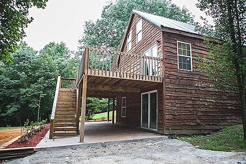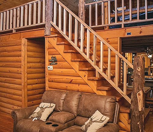 Custom built log home on Rough River. Incredible craftsmanship and detail describe this gorgeous home. This rustic dream offers vaulted ceilings, stone fireplace in living room, master suite, dining area, country kitchen with breakfast nook. Walk upstairs to your oversized loft area suitable for 2nd living space or could accommodate multiple guest & 2nd full bath. Take notice of the mesmerizing woodwork thought out including hardwood floors w/ custom inlay. The full unfinished walkout basement is ready for your final touches. Cabin has 2 massive decks, back deck overlooks the serene recreational area for year round outdoor fun. As an added bonus, 16x22 detached garage. Property backs up to the Corp. of Engineer redline. Call Kelly today for your private showing.