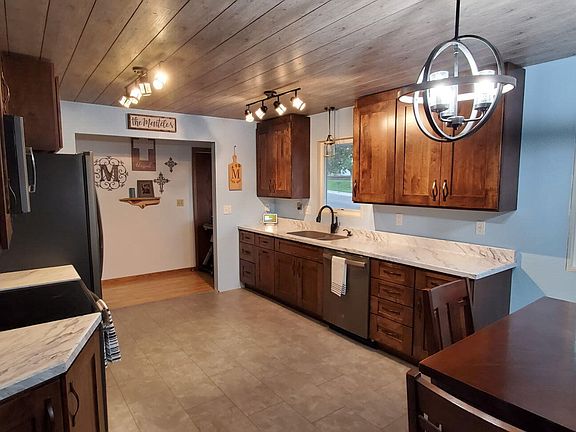 Quiet street, many updates. Don't waste any time viewing this 4 bed (1 nonconforming), two bath home. Beautiful remodeled kitchen with Dakota Kitchen cabinets, and updated bathrooms, one with an air massage tub. Primary bedroom has 2 closets one being a walk-in. New HCAC in 2019 & new roof in 2024. Large garage and a huge fenced backyard. Call your favorite Realtor for a showing today!