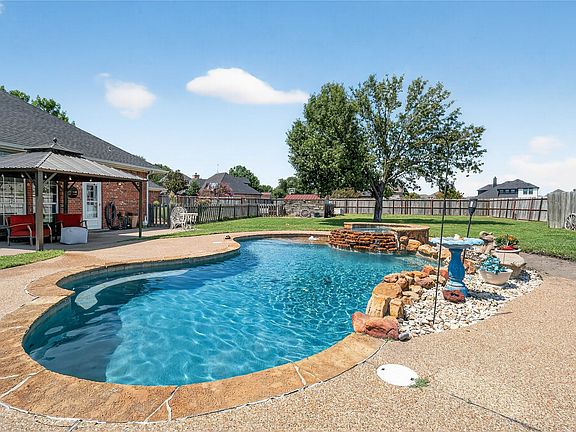 Home is selling for under appraised value! Welcome to this stunning single-story home tucked away in the highly sought-after Mustang Meadows neighborhood! Perfectly positioned on a quiet cul-de-sac within a charming one-street community, this home offers both privacy and a resort-style backyard retreat.