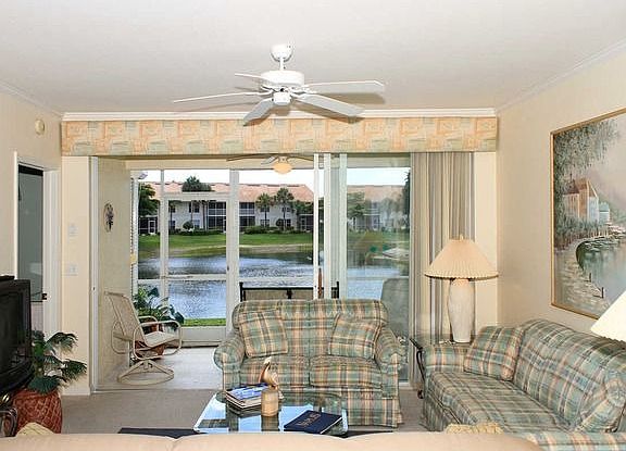 GATED COMMUNITY, 245 TOTAL ACRES, LOW DENSITY - 3.27 RESIDENCES PER ACRE, BIKE/WALKING TRAILS, MAINTENANCE-FREE LIVING, BOCCI COURT, TOT LOT - FENCED CHILDREN'S PLAYGROUND, 30 LIGHTED FOUNTAINS, 4600 SF CLUBHOUSE FEATURING A 60' LAP POOL, 4 LIGHTED HYDROCOURT TENNIS COURTS AND 40 ACRES OF PRESERVES AND PARKS FOR GREENSPACE AND ENJOYMENT. PRISTINE 2 BEDROOM PLUS DEN TURNKEY FURNISHED CONDO WITH WESTERN VIEW OVERLOOKING LAKE AND POOL. NEUTRAL COLORS. TILE IN ALL AREAS EXCEPT MASTER BEDROOM, LIVING ROOM (DINING AREA TILED) AND 2ND BEDROOM. CLOSE TO CLUBHOUSE. ELECTRIC SHUTTERS ON REAR OF SCREENED LANAI, MANUAL SHUTTERS ON NORTH SIDE OF LANAI. SHORT 10 MINUTE DRIVE TO DELNOR WIGGINS STATE PARK WITH LUSH LANDSCAPING AND BEAUTIFUL SANDY BEACH . WALK TO PUBLIX GROCERY STORE, RESTAURANTS, BANKING ETC. MOVE IN READY.