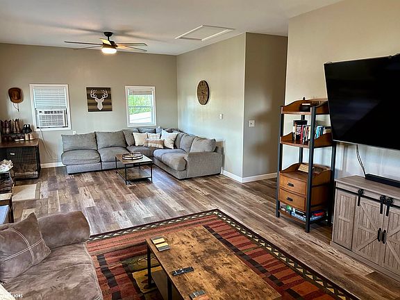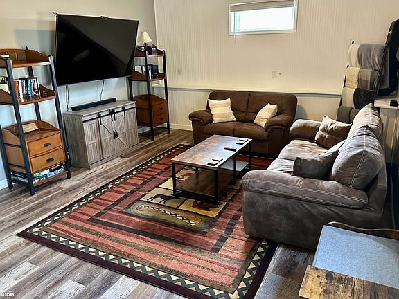 Start living your lake life today! Whether you're looking for a full-time residence or the perfect weekend retreat, this property offers the ideal blend of comfort and charm. A welcoming front porch and cozy fire pit area set the tone the moment you arrive, giving the home an instant relaxed feel. Step inside to a spacious living room designed for entertaining, featuring soaring 10-foot ceilings that flow throughout the home. Down the hall, you’ll find two well-appointed bedrooms situated conveniently side by side. The kitchen is a standout, complete with matching appliances, a rustic tin backsplash, and a stylish island that opens to the dining area—ideal for gathering with friends and family. Just beyond, you’ll find the full bathroom and laundry room, highlighted by a stunning copper sink. Enjoy views from the dining room that lead out to the back deck, perfect for summer grilling or unwinding in the hot tub any time of year. The one-car garage and lean-to, paired with a spacious driveway, make guest parking effortless. The garage also features a built-in bar, creating the perfect space for entertaining or relaxing after a day on the lake.