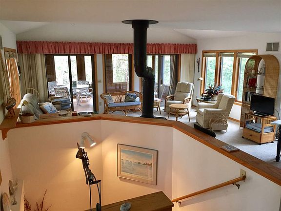 Enjoy the lifestyle of the Hemingway generation in historic Horton Bay. Tucked into the hardwoods atop this 4.5 acre parcel, this ceder sided home offers total privacy and over 200' on Lake Charlevoix's Horton Bay. Walk to the general store for morning coffee and scones before a day at the beach. Evenings in the screened porch completes the perfect day.