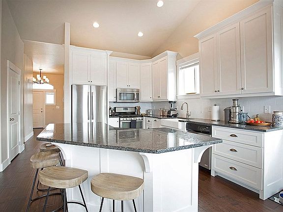 Sited in a private location, bordering community open space, with spectacular views from every room, this newly constructed Megan Floor plan is stunning with a contemporary, craftsman finish. With Chaparral Maple Wide Plank floors, barn sink, granite counters, stainless steel appliances, vaulted ceilings, jetted tub, this home is accented with some of the most beautiful features. The Megan downhill floor plan boasts functionality with main level living; Master suite and office with French doors offering a large kitchen to great room feel. Enjoy outdoor dining on the beautiful back deck with views of the Timpanogas. The walk out basement is wired for surround sound in the family room. In The Cottages, the HOA maintains all landscaping as well as snow removal for your driveway. HOA dues include high speed internet, snow removal for roads and driveway, all common area landscaping, insurance, taxes, maintenance, plus clubhouse pool, hot tub and fitness center.