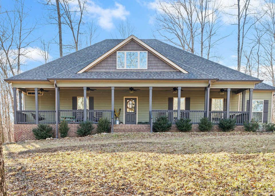Porch Sitting in the country! Watch the wildlife while you sip your morning coffee on your porches and enjoy the quiet lifestyle on your porch swing. Over 5 acres, a detached garage, built-ins, tons of ceiling fans, and all on one level! Home has a split bedroom plan with guest bedrooms on one side of the home, away from the primary bedroom suite. The Detached garage is perfect for projects. Open concept, a huge pantry, massive shower and much more.