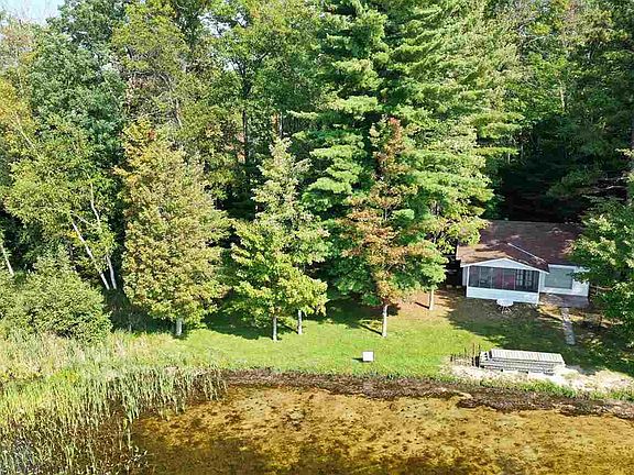 ALL SPORTS LONG LAKE! This opportunity comes along once in a lifetime! 291. ft frontage and 2.26 acres on completely level lot with primo sand frontage! wooded property, you cant even see house from the road! there is nobody near you! the view is outstanding on the biggest part of the lake and you will see the sunsets and have a full day of sun on your beach! The property is spectacular and i havent even begun to tell you about the house! step back in time to this cottage of yesteryear so well maintained! open high log ceilings, three bedroom, all knotty pine walls and ceilings,beautiful wood burning stone fireplace! been in the same family since built in 1947! Screened porch all the way across the lakefront side of house! large barn shed and newer 2 car garage w vinyl siding to house all your toys and also hot water heater with shower here for overflow guests who are for sure want to come and stay with you at the lake! Although this is a very cool cabin, some people may want to take it down and build their dream home on this incredible spot, or maybe you want to split in to 3 waterfront properties which would be allowed and still have lots that were very large! there is also property across the road that goes with it, for camping, extra parking, or to build a pole bar, though there is plenty of room for all that too right on the waterfront property which has 400+ ft of depth..you could even sell back property off to many who are looking for a spot to build an extra garage! You have not seen a property like this come up for sale on Long Lake before! this is a unique jewel