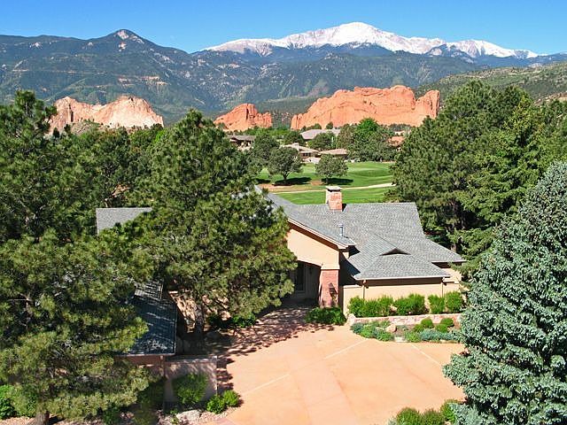 One Level Ranch Home on West Golf Course! This Kissing Camels home has an expansive great room & adjoining family room with vaulted ceilings, wet bar, built-in entertainment center & fabulous golf course, Garden of the Gods, Pikes Peak & mountain views. Located in a quite cul-de-sac, this home offers true main level living with no stairs. Home is currently set up for maximum ADA access and mobility assistance. Relax as you take pleasure in the outstanding views from your master bedroom. The bedroom has a cozy fireplace, extensive closets, built-in drawers, separate dressing areas as well as an adjoining 5-piece bath with double vanity, free-standing shower and jetted tub. The third bedroom with an adjoining bath located off the back hallway can be used as private guest room or live-in situation. Offered at $750,000