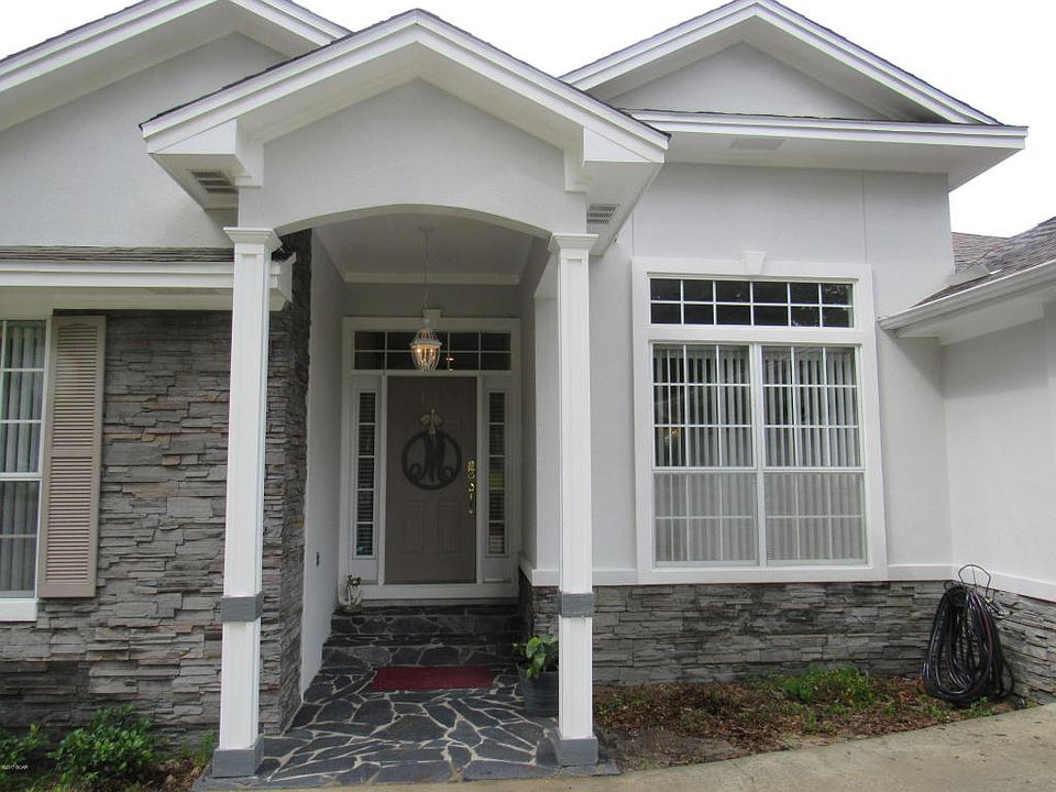 Lakefront! Valleys, lakes, hills, and meadows; some of the prettiest countryside in Florida. This is a very impressive home and owner has cleared the lot for lake views from the front of the home also. As you enter the beautiful stone entrance way from the cement driveway that curves through the beautiful trees it is evident that this home has had exceptional care. The great room is adorned by a fireplace with mantle, and hardwoods with colors that carry the warmth throughout the home. The gourmet kitchen has ceramic tile and granite counter tops with custom cabinets, and a breakfast nook that overlooks the large screen porch (length of home) overlooking the lake and oak trees. The living room & master suite exit on to the porch also; Imagine enjoying the fireplace in the evening