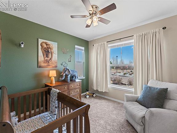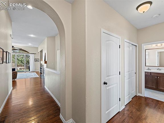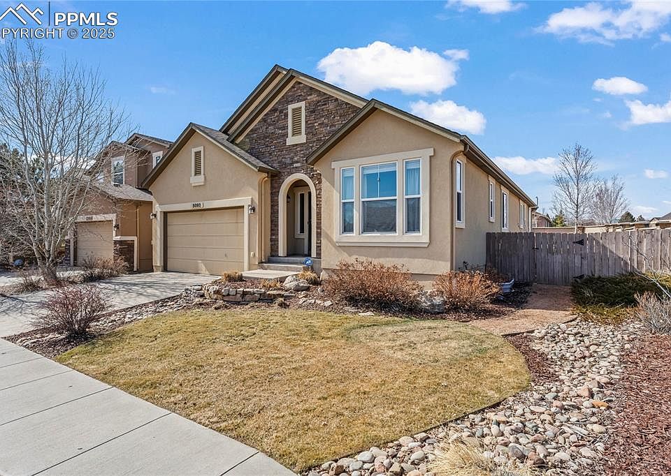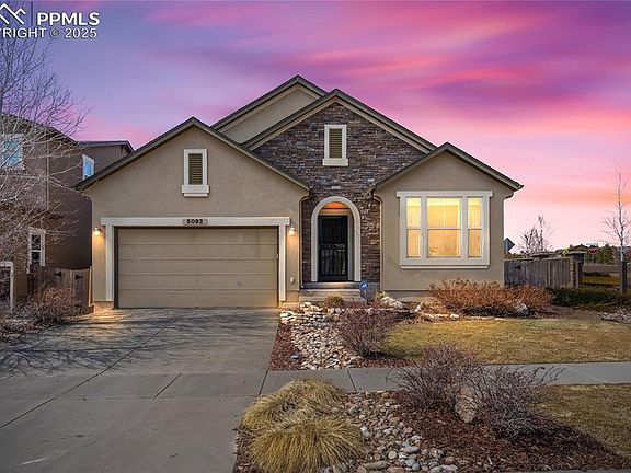 This is a great opportunity to make your home in Cordera, one of Colorado Springs' premiere master-planned neighborhoods. This rancher with a finished basement has been lovingly maintained and the open floorplan allows for flexibility for many types of homeowners and today's living needs. The spacious kitchen, with stainless steel appliances, allows for flow and functionality. Granite countertops, 42" cabinets and a large pantry make a winning combination in the kitchen. The kitchen, dining, and living room are open and make entertaining a breeze. The sliding glass doors in the living room open to a covered patio extending your living space to the outdoors when the weather is nice. The laundry room is conveniently located on the main level and leads to the garage. The owner's suite has a connected 5 piece bath and leads to a large walk-in closet with custom cabinets and shelving. There is also an office with new carpet and built-in shelving and a bedroom and its own bath on the main floor. The basement is spacious and includes cabinets and shelving for crafting, homeschooling, or work from home. 3 additional bedrooms and a full bath finish out the basement. The garage is oversized and has overhead storage. This is a corner lot on a cul-de-sac street finished with an HOA maintained stone wall on two sides, providing privacy in the backyard. D20 schools, miles of paved trails, several parks and a community center with a fitness center and pool.