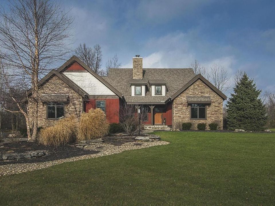 Gorgeous, custom built & meticulously maintained! Private, wooded lot on cul-de-sac with 2+ tranquil acres & pond with a fountain. Covered front & back porches, flagstone walkways & two-tiered stone patio w/woodburning stone fireplace & grilling station! Open plan w/post & beam construction. Superior Amish craftsmanship thru out. Dramatic floor-to-ceiling, 2-sided stacked stone fireplace. Loft overlooks stunning kitch w/granite, SS appliances & huge island; open to great rm w/cathedral ceilings & scenic view. Spacious owners suite w/dual walk-in closets. Mster spa w/jetted tub & lg walk-in shower! 2 more bedrms on main level w/walk-in closets & dual bath. HUGE lower level w/tall ceilings, xtra bedrm, full bath & storage. Whole home generator.Close to NA, Westerville, Polaris/Easton