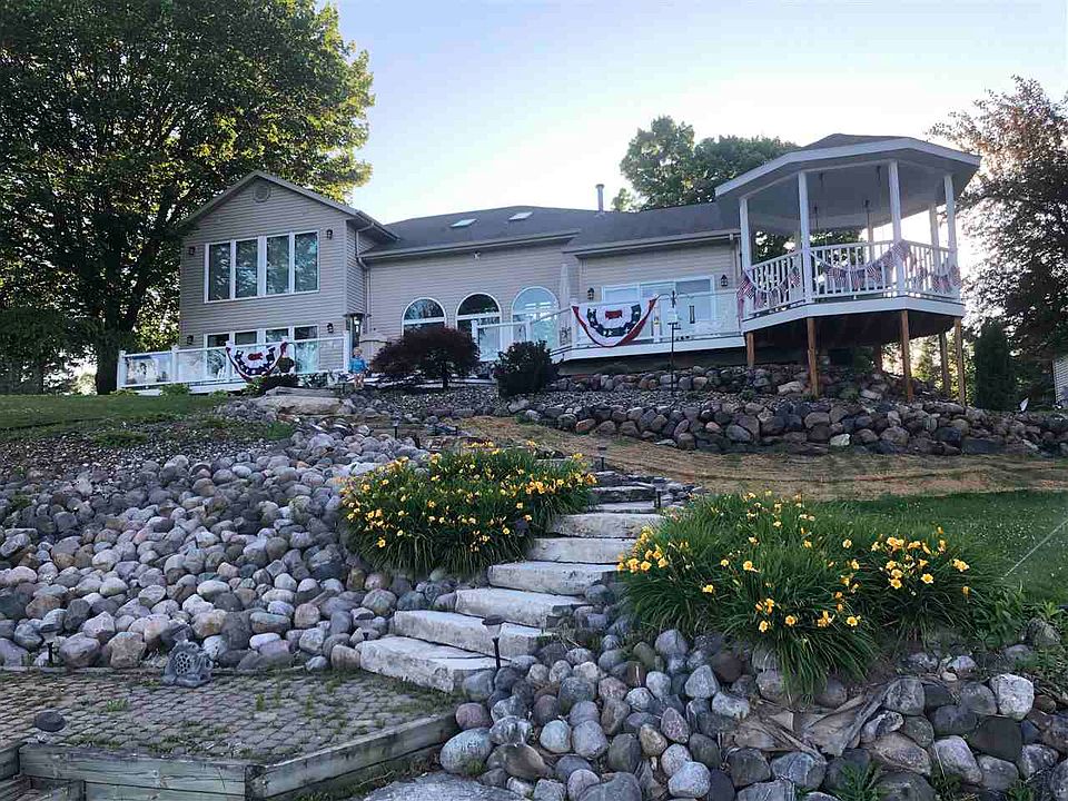 Pristine custom home on Lake Lancelot. Beautiful setting with all professional landscaping, 94ft of sandy shoreline. 3 bedrooms, 2-1/2 baths with large loft with a fabulous view of waterfront. Excellent for working at home. Excellent floor plan with main level master suite, walk-thru closet, fully bath with dual vanity, jacuzzi tub and shower. Great room has all new windows that give you full view of landscape, island and waterfront. Master suite also has floor to ceiling windows along with new wrap-a-round deck which has clear see-thru railing for full view of lake and best seat in the house to view fireworks. Deck is high-end multi color Trek with vinyl railing and gazebo. Attached 2-car garage, sub-zero freezer and large fridge, plenty of storage and more. You can also purchase lot 256 if wanting an additional 75ft of waterfront making it a total of 169ft for play space, adding an addition or for privacy. Ownership give you access to all of Sugar Springs amenities to enjoy.