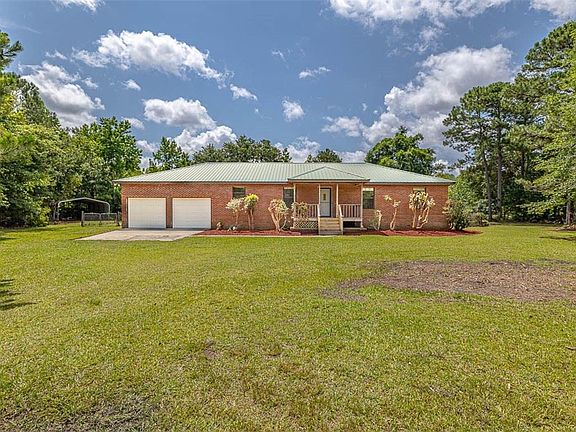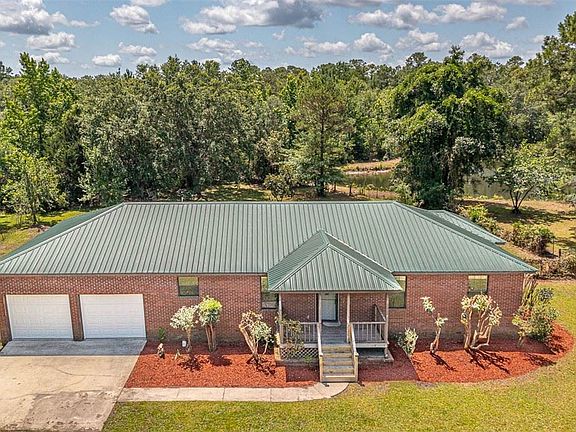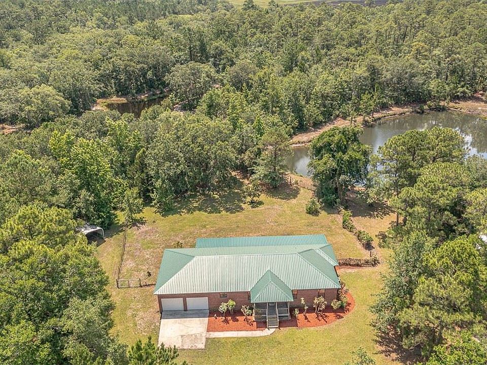 Get ready for peaceful, quiet living! This brick home with metal roof is situated on 14.4 acres. Enjoy the serenity of your back porch while looking over your own pond. Bring the boat, 4-wheeler, side by side, golf cart or extra cars. There is an enclosed storage building on the property that measures about 30x 50. Approximate measurements from the tax map shows about 8 - 9 acres of the property is upland. An extra special surprise in store is that the back of the property (past all of the trees) meets marsh so you can take full advantage of beautiful views if you so choose. Many improvements have been made to get this unique property ready for it's new owners....interior painting, Sprucing Up Back Porch (only 2 years old), landscaping, New Garage Doors, New Toilets and overall Tidying Up of the Home.