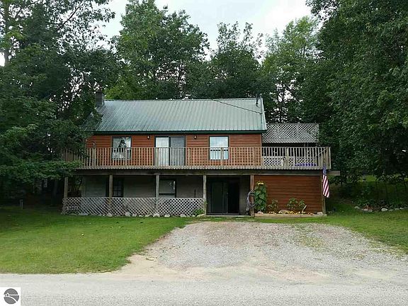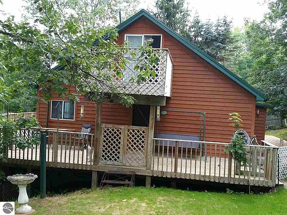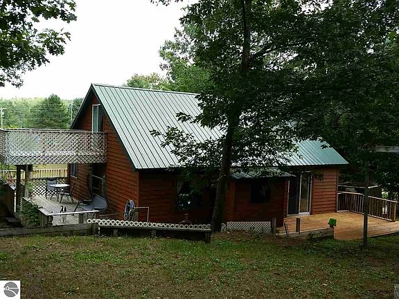 This home is adorable, and very well maintained. 4 bedrooms, with 1 of them located in walkout basement, non conforming. 1 large full bath, with another plumbed, and ready to install on lower level. Large yard, with privacy fencing installed. Multi decking to enjoy the view, and the morning sunrises. Metal roof installed, and lower level has started to be remodeled with notty pine, and drywall. Drywall needs to be finished off, and painted. all utilities are installed, with natural gas. Home is located 20 minutes from Traverse City, and 10 minutes from Kalkaska. A must See !!!