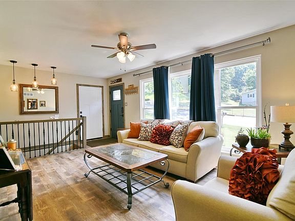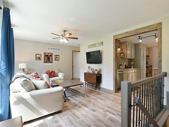 Open House Saturday, June 20, 1-3pm! Wow! This is truly exceptional! These owners were not planning on moving and these updates are incredible! Check out this kitchen! Brick walls, stainless steel appliances, crown molding on cabinetry, quartz counter, coffee bar & center island with quartz counters! New vinyl plank flooring, barnwood type trim, rod iron spindled staircase with pendant lighting! Check out these baths! Two completely updated baths with new vanities, commodes, tub/shower, flooring, everything! Master bedroom features crown molding & 2nd bedroom features wainscotting. The finished walk-out lower level is so spacious with a large family room with built in shelves for tv, plus office area with wood floor, second full bath! Wait, there's more! The outdoor living area is absolutely amazing! Covered 21x21 stamped patio with skylights & ceiling fans! Roof less than 7 years old! This one will go fast! All updated vinyl windows! Updated lighting throughout! See it now!
