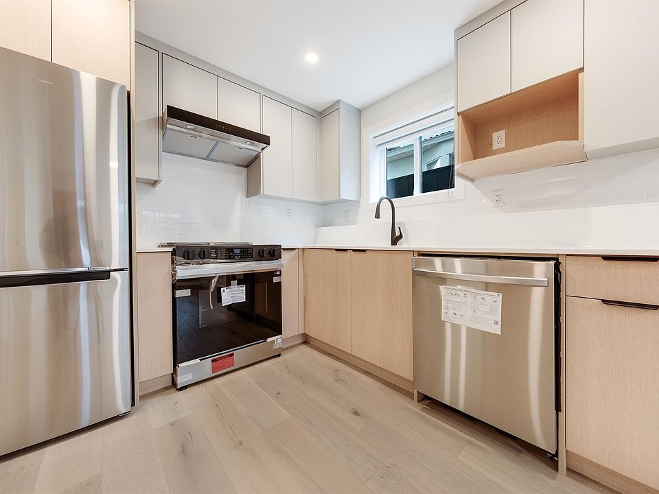 Rental Suite included! Welcome to Strive on Slocan, a thoughtfully designed new development on the QUIET side of Slocan St. This unit features two spacious bedrooms, a flexible den perfect for a home office or nursery, AND a legal rental suite with its own separate entrance, kitchen, bathroom, and laundry - an ideal mortgage helper or space for extended family. The open-concept layout includes a European-style kitchen with wrap-around cabinetry, quartz countertops, and contemporary black fixtures. Stylish engineered hardwood floors, large double-layer windows, and in-suite laundry add to the comfort and functionality of the space. Optional air conditioning and smart storage solutions ensure year-round ease and organization. Estimated completion Nov 2025.