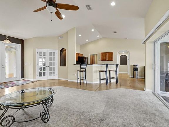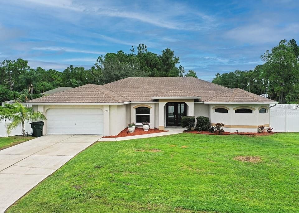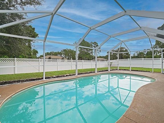 If you've been looking for a home with room to roam and everything you need to enjoy the Florida lifestyle then this is your home. This 2,054 square foot home on .26 of an acre has a large open living room area with pocketing sliding doors out to the pool and deck plus built-ins in the wall to display your special keepsakes. The kitchen has tile floors and black stainless appliances. The dining room looks out over the pool and has sliding door access to the pool and pool deck. This home has a split floor plan with the two guest bedrooms and guest bathroom (which is also a pool bath) on one side and the expansive master suite on the other side. The master bedroom is large enough for your bed and bedroom furniture while still having room to add some exercise equipment or a reading or yoga area - you decide. There are sliders leading to the pool and pool deck as well. On nice cool days you can open all the sliders and enjoy a cool breeze throughout the house. Outside, where you will probably want to spend a lot of time, you'll enjoy lounging in the pool or poolside AND you'll enjoy the privacy of a vinyl privacy fenced backyard. (The Seller does have the barrier fence that goes with the pool in case you need it). Once you enter the master bathroom you'll have the luxury of either taking a shower in your dual entrance walk in shower or taking a long leisurely bath in your soaking tub. The tub is located in the center of the bathroom so you'll feel like you have plenty of space to relax and enjoy your bath. The master bathroom has two walk in closets as well as a linen closet just outside the bathroom. This may be the one that checks all your boxes if you're ready to move.
