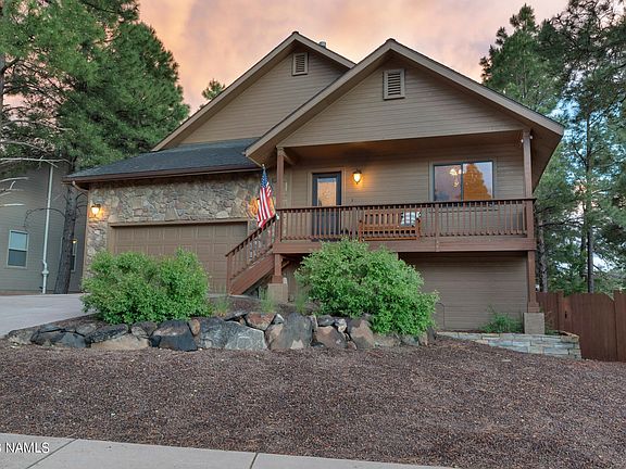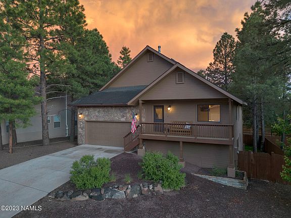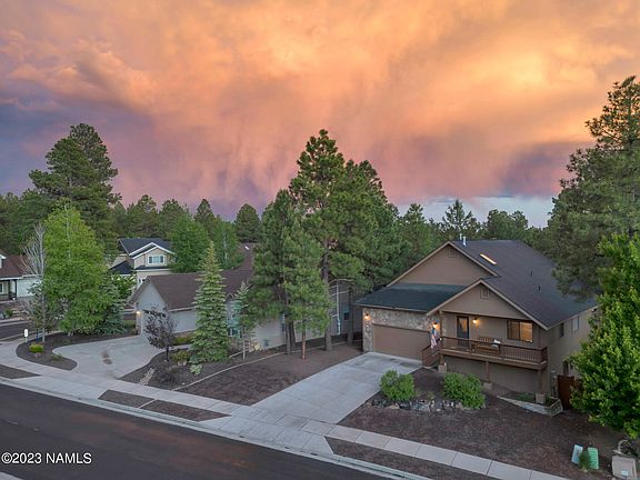 MOUNTAIN LIVING AT ITS FINEST in this fabulous custom home just a short distance from the national forest and Flagstaff Urban Trail. Gorgeous five bedroom awaits you in beautiful Ponderosa Trails in quite possibly the BEST location within the community. Open floor plan features a terrific great room with vaulted tongue and groove ceiling, HICKORY hardwood floors, and direct access to a large deck perfect for Flagstaff's awesome summer weather. Adjoining kitchen includes custom hickory cabinetry, beautiful granite, center island with breakfast bar, large pantry, and stainless appliances. You'll really enjoy twilight entertaining on the rear patio! Private main floor primary suite, main floor guest bedroom & bath, and a huge bonus room that offers multiple options. A very special home!