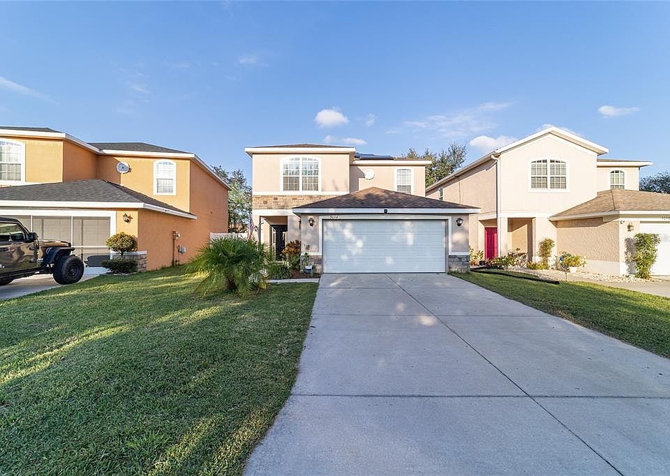 Beautiful 4-Bedroom “Magnolia” Model with Solar Power, Water Softener, and Oversized Fenced Yard in Parkwood! Welcome to this exceptional 4-bedroom, 3.5-bath “Magnolia” model home offering the perfect blend of style, comfort, and energy efficiency. Located in the highly desirable, family-friendly, deed-restricted community of Parkwood, this property sits just minutes from The Villages, shopping, dining, and top-rated schools. Home Features This thoughtfully designed home includes 2,109 sq. ft. of living space, a 2-car garage, and a charming covered front porch. The exterior boasts a rare block/stucco first floor with frame/stucco second floor, delivering both durability and timeless curb appeal. Inside, a welcoming foyer opens to ceramic tile flooring throughout the living, dining, kitchen, and bath areas. The kitchen offers wood cabinetry, beveled-edge laminate countertops, and a cozy eat-in breakfast nook. Upstairs features a smart and functional layout with new water-resistant laminate flooring (Dec 2024) throughout most of the second floor. The primary suite includes a spacious walk-in closet, ceiling fan, and private bath, while a convenient upstairs laundry room adds everyday comfort. The oversized vinyl-fenced backyard (49 ft × 28 ft) is ideal for outdoor living, complete with two concrete patios perfect for grilling, entertaining, or relaxing under the stars. Energy Efficiency & Premium Upgrades This home stands out with major modern upgrades designed for long-term comfort, savings, and peace of mind: Tesla photovoltaic solar system with two backup batteries — enjoy reduced electric bills and reliable power even during outages Kinetico water softener + reverse osmosis system — premium water quality throughout the home Upgraded AC system (2020) with UV light for cleaner, healthier indoor air Resurfaced AC ducts (2020) with routine six-month maintenance New refrigerator (Mar 2025) featuring craft-ice New smart water heater (Jun 2025) with app-based temperature control Bonus: A 65-inch TV and electric fireplace are included with the home! Community Amenities Residents of Parkwood enjoy resort-style living with amenities such as: Community pool Fitness center Playground & park Multiple sports courts Picnic pavilions This vibrant, non-age-restricted community has NO BOND, making it the perfect place to call home!