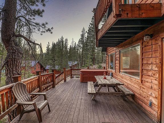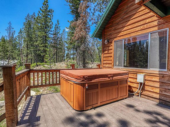 Brilliantly Rustic Cabin with Oversized Primary Suite! Beautifully situated on a 0.27-acre lot, this 3BR/2BA, 2,468 sq ft residence radiantly charms with an entertainment-ready floor plan, gorgeous hardwood flooring, a large living room, spacious bedrooms, and a dining room/family room with wood beam ceilings and a fireplace. Bask in the open concept kitchen with stainless steel appliances and an island. Enjoy sipping wine with guests on the expansive deck and relish in the soothing hot tub. Come see today and have it all!