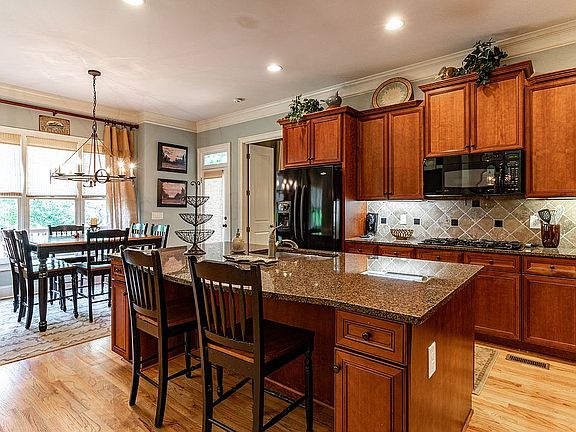 - Kitchen Features: Breakfast Bar, Cabinets Stain, Eat-in Kitchen, View to Family Room, Stone Counters, Kitchen Island, Pantry Walk-In, Breakfast Room