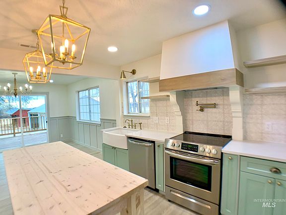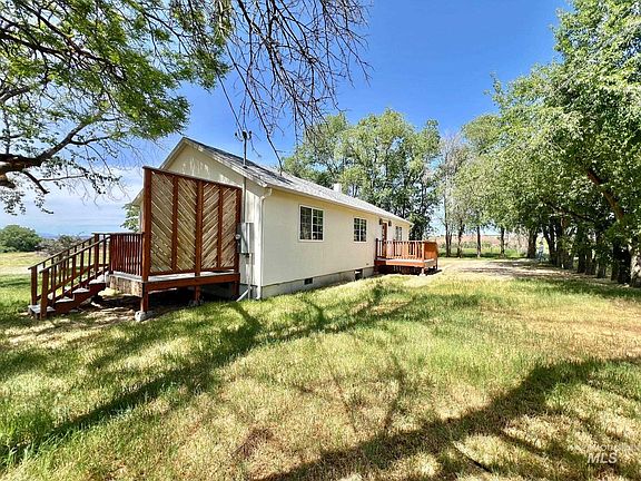 FARM/RANCH-REMODELED COUNTRY HOME on approx. 2.49 acres with water shares. Enjoy an abundance of natural light, open floor plan, two living spaces, antique touches & so much more. Kitchen boasts a stunning tile backsplash, floating shelves, custom stove hood & island, pot filler, quartz countertops, SS appliances & walk-in pantry. Primary suite is a dream w/ sliding barn doors, rustic double vanities, tiled shower w/ double rainfall shower heads & generous walk-in closet. Striking banister leads down to the family/rec room & two additional bedrooms complete w/ cedar lined window wells, a divided bathroom & brilliant laundry room. Picturesque views highlight outside living with 3 decks, garage & paddock surrounded by an assortment of shade, fruit and hazelnut trees. Create a hobby farm, grow your home-based business with Highway 95 frontage, build a shop/ADU—sky's the limit!