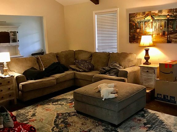 Move in ready home with 3/2, updated kitchen and baths and large Greatroom with wood beams!There is a breakfast area in kitchen and a large sunroom off the back. Spacious fenced backyard and storage building.