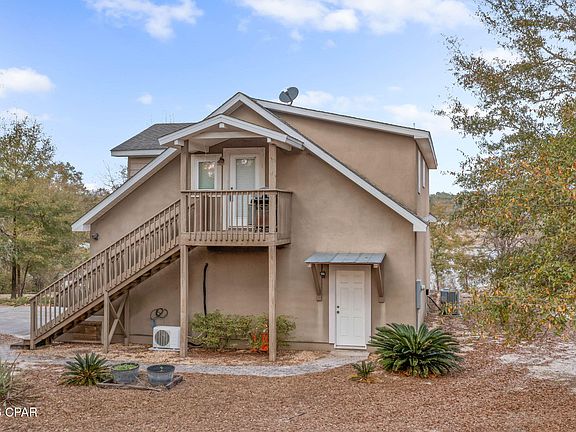One-of-a-kind waterfront retreat on beautiful Piney Lake! This unique property offers the perfect blend of functionality and breathtaking views, featuring a climatized 3-car garage on the ground level with a thoughtfully designed 1 bedroom, 1 bath home above to capture the best lakefront scenery. Step inside to find rich hardwood floors and an open-concept living area that flows seamlessly into the eat-in kitchen equipped with granite countertops, tile flooring, and an abundance of cabinetry. The bathroom features tile floors, a custom tiled shower, and a convenient laundry area for added functionality. The bedroom is a true highlight, offering direct access to a private balcony overlooking the lake, the perfect spot to enjoy your morning coffee or unwind with sunset views. Whether you're looking for a weekend getaway, investment opportunity, or full-time lakefront living, this property delivers charm, versatility, and unbeatable views, all located approximately 35 minutes from Panama City Beach, home to ''The World's Most Beautiful Beaches.''