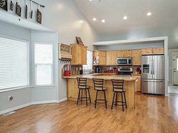 You'll love the kitchen and family room area with vaulted ceilings, a big bay window by your dining table, and French doors to the big deck out back. All of the new stainless steel appliances stay. Enjoy both of the big Jacuzzi tubs, one in the master bedroom and the other down stairs. The basement will blow you away...the spacious bright family room with the awesome attached entertainment stand, two huge bedrooms both with large walk in closets across from a full bath with the 2nd Jacuzzi tub. Take advantage of the walk out basement leading into a large room perfect for any type of home business especially a salon. You'll have now worries with the 2 yr new A/C and furnace. This one won't last long so come see it today.