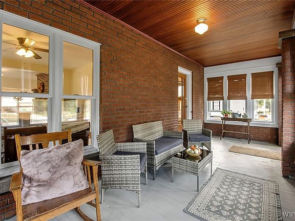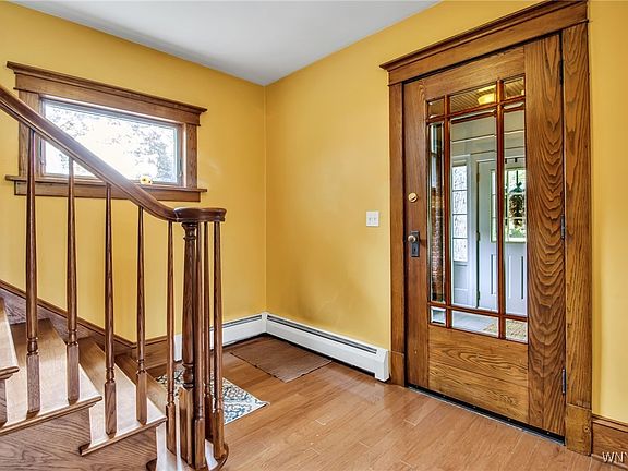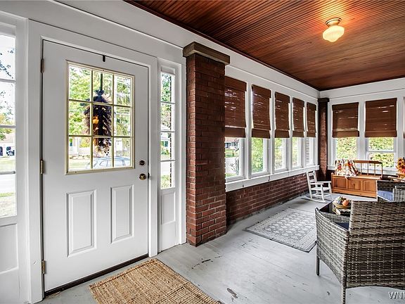 Welcome to this charming 3+ bedroom, 2 full bath home in the heart of Clarence Hollow, perfectly blending historic charm with modern updates. This spacious home blends character, comfort, and convenience in a sought-after location. Step into the inviting enclosed front porch—ideal for morning coffee or evening relaxation. Inside, you’ll find stunning woodwork, a warm brick fireplace, and spacious living areas filled with natural light. The dining area opens seamlessly into the updated kitchen, featuring abundant cabinetry, bright white finishes, and plenty of space for meal prep and entertaining. Upstairs, you’ll find three comfortable bedrooms, while the finished third floor is perfect as a 4th bedroom, home office, playroom, or creative studio. With 2 full baths, there’s room for everyone’s needs. Outside, enjoy a generous yard, concrete patio, and an oversized garage for vehicles, storage, or workshop space. Located near bike path, shops, dining, brewery, farmers market, and all that Clarence Hollow has to offer. Desirable Clarence Schools. Don’t miss your chance to make this classic home your own! Sellers reserve the right to set an offer deadline. Open House canceled.