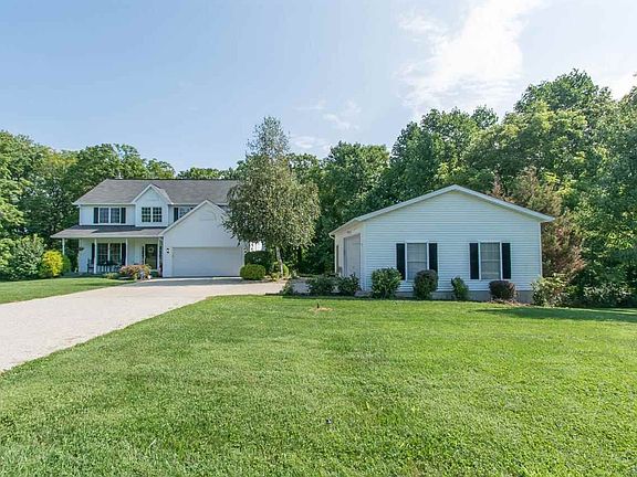 Well Designed 2 Story home built by G & S Homes. 4 bedrooms and walkout Lower Level. 4 Car Garages. See the Virtual Tour online. Only 15 minutes to I. U. or east side restaurants and College Mall. Enter this home from a covered front porch to a large entry way that leads to a living room or to the eat-in area off the Kitchen. Living room has large windows facing the front yard and street. The kitchen is fully equipped with all the appliances staying with this sale. Large center island in kitchen for quick meals, cooking preparations, and for entertaining. The kitchen room looks into the dining area, and the large family room. There is a planning desk, a mud room from the 2 car attached garage, and a 1/2 bath of the main level. Beautiful staircase off the entry way leads to the second floor. Come see the newly created Den with pocket door and window. Also, 3 bedrooms, loft with bookshelves, and a good size laundry room next to the hall bath are ready for the next owners. The master bedroom suite with ceiling fan, lots of windows, and vaulted ceiling allows for quiet time in a comfortable setting. Master bath has jetted tub, separate shower, double sinks, and a walk-in closet. AND, the Full walkout Lower Level offers the fourth bedroom with a 1/2 bath(could be a full bath when a shower is added), a storage room,and a huge recreation room. The main level has a large deck for evening enjoyment and grilling out. Plus the extra 2 and 1/2 car detached garage (32 x 24') has space for a workshop and the extra cars. The attached garage (23' x 20') is located next to the mud room. The total garage sq. ft. is 1228 s.f. for 4 cars. This house is located on 3.49 Acres and on a friendly cul-de-sac street. This property could be yours!! Come See. Call Today.