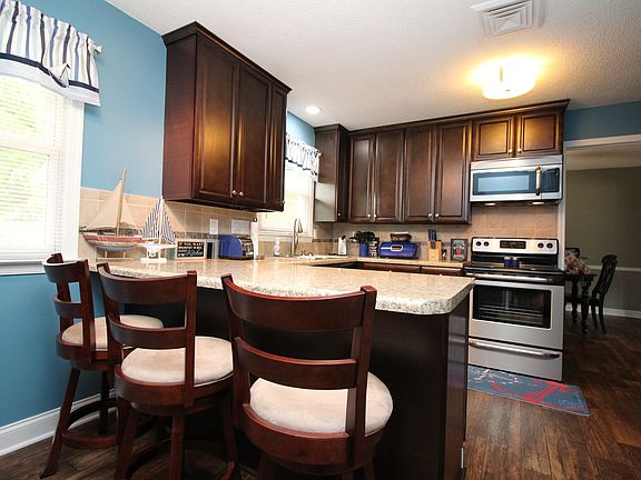 Lovely split level home! Lots of updates inside and out! Large den on the lower level with access to the back attached carport. Beautiful kitchen with breakfast bar, tile back splash, updated cabinets, laminate hardwood floors & stainless steel appliances. Formal dining room with french doors leading out to the back patio. Master suite on the upper level with updated vanity, tile shower & tile flooring. Great size corner lot in a great location! New tin roof added in 2015.