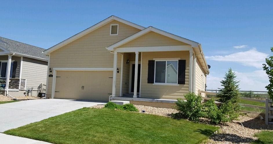 AVAILABLE NOW. THIS IS A VERY NICE HOME. SUPER location - upscale neighborhood!! Friendly subdivision. The house was built in 2015. Just painted inside - has newer carpet and pad, has new washer/dryer and new side by side Frig. Fenced yard with full sprinkler system. Unobstructed view behind the house backs up to open field. Quiet neighborhood. Features high ceilings and ceiling fans. 2 car attached garage with remote. Additional newer refrigerator in garage. Call Andy 720-381-8890 for showing-shows anytime. Requirements: 580 credit score No past evictions No rental application fees Owner pays HOA DUES