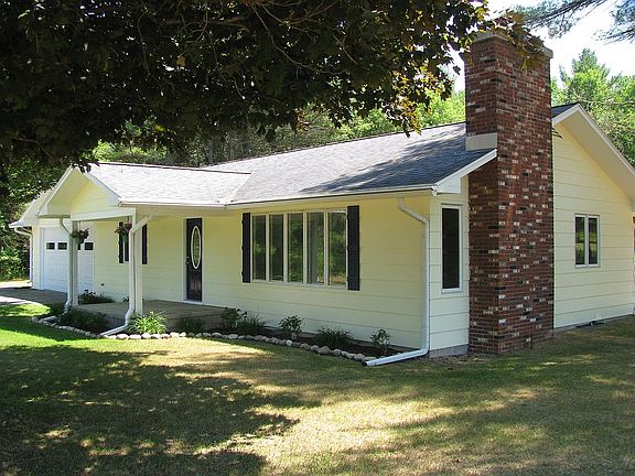 Well maintained 2 bedroom home on 7.9 acres with two car attached garage with opener and is finished, insulated and heated. Lots of storage in the home. Completely remodeled kitchen with shaker cabinets and new stainless steel appliances which includes a side by side refrigerator with water and ice, five burner gas stove, microwave and dishwasher. There is new Pergo waterproof flooring in the kitchen, dining room, hall and upstairs bathroom. New carpeting in living room and bedrooms, Both bathrooms have been completely remodeled. Dining room has a sliding glass door which leads to a covered porch that has recessed lights and a ceiling fan. There is a full finished basement with heat, 3/4 bathroom, recreation room, two possible bedrooms and a large laundry room which comes with a washer and dryer. There is a new gas hot water heater and new water pump. This home has a fireplace, black top driveway, Anderson crank out windows, lighted flag pole, natural gas, hot water baseboard heat, seamless gutters with leaf guard. Barn has cement floor with electricity. Other side has storage and a loft. If interested please call (989) 335-5103 or (989) 335-5163
