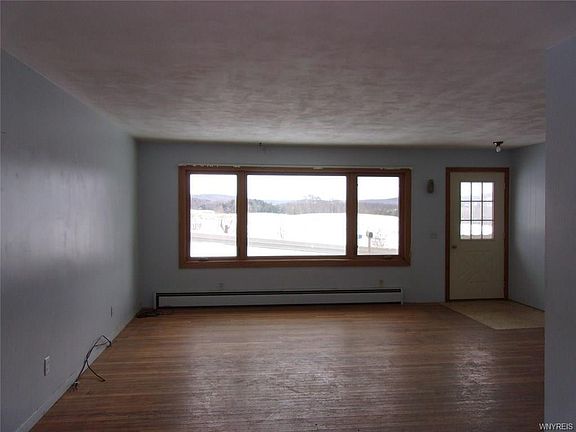 Now's the time to take that first step into home ownership or a great Ranch home if you are down-sizing. Check out the nice size and low price of this 3-bedroom/1-bath 1215-SF home on 2.63 acres. Offers a dining room, large living room with hardwood floors and kitchen with refrigerator. Newer metal roof, Natural Gas heating, walkout basement/1 car gar. that you can make a hobby room or workshop and has a wood burning fireplace. Hardwood flooring in most rooms. Make it yours and update to your liking. Outside features large concrete patio off the back overlooking the yard, many mature trees, large pond and a beautiful view of the hills. Only a short drive to Holiday Valley Ski Resort in Ellicottville or shopping in Springville.