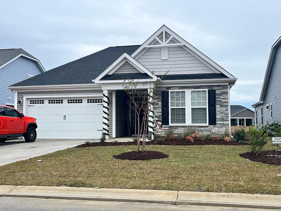 A perfect balance of outdoor living spaces and coastal-inspired interior, this model encourages you to slip your sandals off and relax. This Shorebreak floor plan offers 3 bedrooms and 2 Full Baths. Step in from a covered front porch to find an opening dining, great room, and kitchen area. Breeze through sliding glass doors onto a covered porch ideal for warm summer evenings or afternoon get-togethers. Through the foyer you'll find a large drop zone and laundry area. Beyond the open living space, find a stunning master suite complete with a tray ceiling, enormous walk-in closet, double vanity, and seated tile shower. Kick your feet up, sit back, and relax among the day-to-day comforts and spaciousness of the Shorebreak.