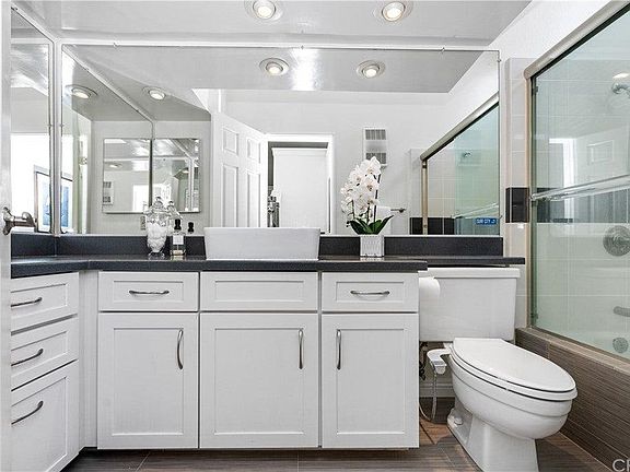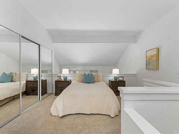 Welcome to Cabo del Mar a lush, well-maintained, secure gated community only a mile from the Pacific Ocean. Your elegant, freshly painted, second-floor two-level condo "lives large" with its soaring ceilings and open concept design. Just beyond the tiled entryway into a spacious living area with a fireplace where laminate floors (with sound-dampening padding) sparkle in the flood of natural light from floor to ceiling windows and a slider leading to your large patio for star-watching, dining, and barbecuing. The elegant kitchen features granite countertops, stainless steel appliances, handsome cabinetry, and a tray ceiling with recessed lighting. The large upstairs loft bedroom overlooking the living room boasts space for a king-size bed, work area, and ample closets with custom adjustable fittings. A gorgeous, sunlit remodeled bath (easily accessed by guests without entering the bedroom area) includes a wide vanity with plenty of storage behind shaker-style cabinet doors, vessel sink, and tub shower with sliding glass doors. Beyond the doors of your lovely retreat, you'll enjoy Cabo del Mar's community pool, jacuzzi, sauna, racquetball court, shady trees, and plenty of parking. Adjacent to beautiful Rivergate park, walking trails, and minutes from Bolsa Chica Conservation Area, the harbor, an array of great restaurants and shopping, and those glorious sandy beaches. A perfect place to call home, move-in ready.