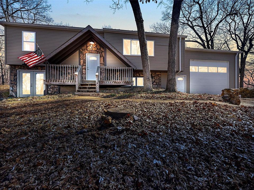 This lovely split foyer 2400 sq foot home is located on one acre, completely surrounded by trees at the end of the drive. Contemporary cabin home fits perfectly with the location for buyers looking for a private oasis away from everything. As you pull up in the driveway you think you are entering your own country chateau. Upon entering you will notice 20 foot wooden beam, wood type floors and accents. Recessed lights showcase large vaulted LR open to dining area and kitchen. Kitchen features custom hand made cabinets and stainless appliances. 4 BR with master suite on each level. Lower level MB is massive with equally large bathroom and walk in closet. Fresh paint and newer carpet in master suite. LL is setup with 4th bedroom and extra kitchen for family. Walk out to backyard and access to 15 foot high garage with extra driveway on side of home for boat or RV. Enjoy your evening in your terraced backyard, deck and firepit. Great family home so pack up and get ready to move.