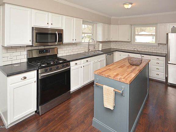 This delightful home has so much to offer including Parchment schools. Spacious kitchen with custom made butcher block center island counter top, tile back splash and SS appliances. Very large bright living room. Laminate and tile flooring throughout first floor. Generous fenced back yard for privacy has an area to plant your garden. 2 1/2 car garage provides plenty of storage. Full basement to be finished to your liking. Many updates including new well in 2016. Driveway off of quiet side street. Minutes from downtown and so close to Parchment schools. Come out and see it today!