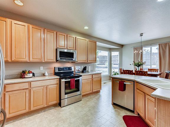This amazing home has it all!! 7 bedrooms on a beautiful park like .23 acre lot located on a cul-de-sac!! High ceilings, open and bright! Oversized kitchen with a walk in pantry, maple colored 42" cabinets, island & stainless steel appliances!! Big laundry room with cabinets & utility sink, main floor office, formal living & dining rooms. The upper floor has a spacious private master suite with a 5 piece bath, jetted tub and nice size walk in closet, three additional bedrooms (all have ceiling fans) along with a full bath with double sinks. The expansive basement has 3 additional bedrooms (one just needs carpet) rec room, 3/4 bath & storage room. New Exterior paint, Gutters and Roof (2018) Oversized two car garage, dog run & Cherry Creek Schools!