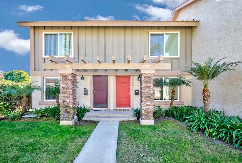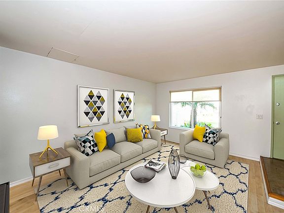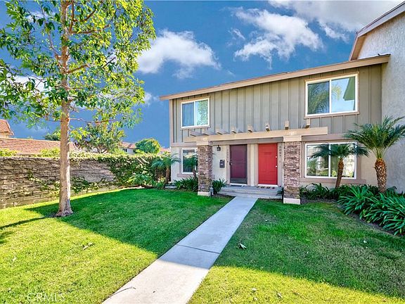 Location, location, location! Beautiful Townhome in the wonderful City of La Palma. Located in the highly desirable La Palma Village community, this beautiful home offers 2 bedrooms / 1 bath, and boasts 928 square feet of abundant living space waiting for you! Fall in love with the large open floor plan with lots of natural lighting, double pane windows and modern engineered/laminate flooring. Living room with open concept dining room flows into the kitchen. Elegantly remodeled kitchen w/acrylic countertop, subway tile backsplash, nice cabinet space, stainless steel gas range/oven, range hood & dishwasher, window and sliding door access to your large back patio. Tons of space to BBQ and entertain, plus convenient laundry hookups. Direct access to the 2 carport parking spaces w/extra storage through the patio. Luxurious Venetian plaster on the wall as you head upstairs to the primary suite with direct access to bath! Another generously sized bedroom with ample closet space. Low monthly HOA dues: appx. $300/month includes Two pools, clubhouse & greenbelts! Plus, HOA has RV parking, subject to availability & fees. Home is centrally located near great schools, dining, shopping, parks, entertainment & easy freeway commute. Don't miss this once in a lifetime opportunity! This one will not last!