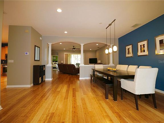 HUGE kitchen and oversized bedrooms. Updated spa-like master bath with glass tile walls and a frameless shower door. Stainless steel appliances. Bamboo flooring in kitchen, foyer, dining room, living room, and bedroom closets. Moen faucets and Koehler toilets in bathrooms.Newly installed installed Areca Palm hedge in backyard provides a ton of privacy. Open concept 3/2 Split + office on quiet cul-de-sac in maintainable-free, gated community. Neighborhood clubhouse with workout area and community pool. Wired for electric car charging. Well maintained with many updates including: Tankless hot water heater in 2013, exterior paint in 2014, new kitchen appliances in 2014, new 2-speed, 16-SEER A/C in 2014, updated master bath in 2015, new flooring in 2016, new Koehler stainless steel farmhouse kitchen sink with Delta Touch2O faucet in 2018, new washing machine in 2018, smart exterior light switches in 2018, and new lanai decking in 2019. HOA fee includes lawn maintenance, mulching, trimming, sprinkler system maintenance, and cable TV. Home also comes equipped with Hurricane shutters.