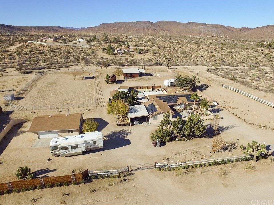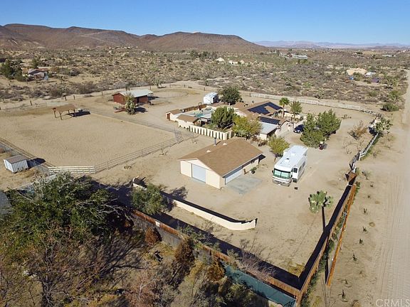 Come take a look at this awesome equestrian property on nearly 2 1/3 acres. This 3bd 3ba home has been recently remodeled with marble floors throughout. The kitchen and 2 of the bathrooms have been redone with new tile and granite counter tops as well. Relax in one of the 3 sitting rooms or outside by the in ground pool and spa or in one of the 4 shaded sitting areas. Let your dogs run wild on the completely fenced 2 1/3 acres or in the large dog run on the east side of the home. Bring your horses because this property has a horse barn that will fit 4 horses (3 inside/outside stall's and 1 outside stall with shade) that has a tack room with hot and cold water, a small circular arena and a large open arena, and an extra tack shed. But wait, THERE'S MORE, you can ride strait to Pioneer Town and on up to Big Bear. If you're into cars, there's a drive through 3 car garage with an office, and there's space for 2 more cars in a covered carport attached to the house. Come check out this home and start to imagine the possibilities.