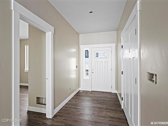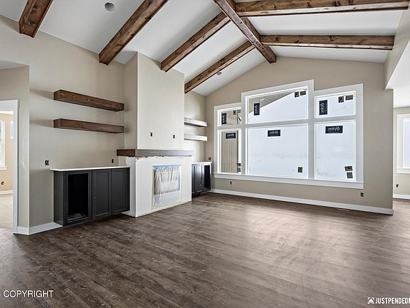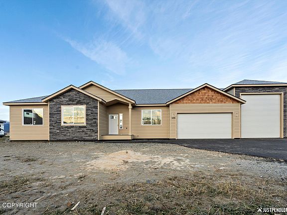 WOW! This new construction home with MASSIVE 1250 sqft garage is sure to impress! This home will boast 1953 sqft, 4 bed, 2 bath and HUGE garage with 39 ft deep RV Bay. Some extras you will notice is a vaulted ceiling in the living room with eye catching faux beams, open kitchen with tile backsplash, quartz counter tops throughout, gas range with hood, 2 pantries for all of you storage needs,under-mount stainless steel kitchen sink, black and gold hardware, large master bedroom with recessed lighting, stand alone tub in master with custom tiled walk in shower, separate water room in master and double vanity. You will love spending time on the oversized 18x12 trex covered back deck! Lots of windows so that you can take in the amazing mountain views! Some of the best views in all of Palmer.