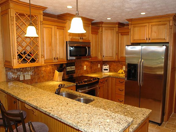 - Kitchen Features: pantry, Breakfast Bar, Breakfast Area, Counter Top Stone, Cabinets Stain