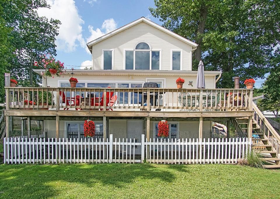 DEWEY LAKE! 2 bedroom 2 bath home located in Sister Lakes with 65+/- feet of Dewey Lake waterfront. The main floor of this home offers a spacious kitchen and formal dining room with hardwood flooring, main floor laundry, panoramic lake views from the living room and a access to the large lakeside deck. Escape the everyday in the large upper master suite with large lakeside windows, master bath, walk in closet and hardwood flooring! Enjoy additional living space in the lower level walk out that includes a family room, second bedroom, and access to the waterfront. Dewey Lake is a 223 acre all sports lake located near restaurants, breweries, snowmobile trails, resort area Sister Lakes and approximately 2 hours from Chicago. Lake memories are waiting to be made in this fantastic home.