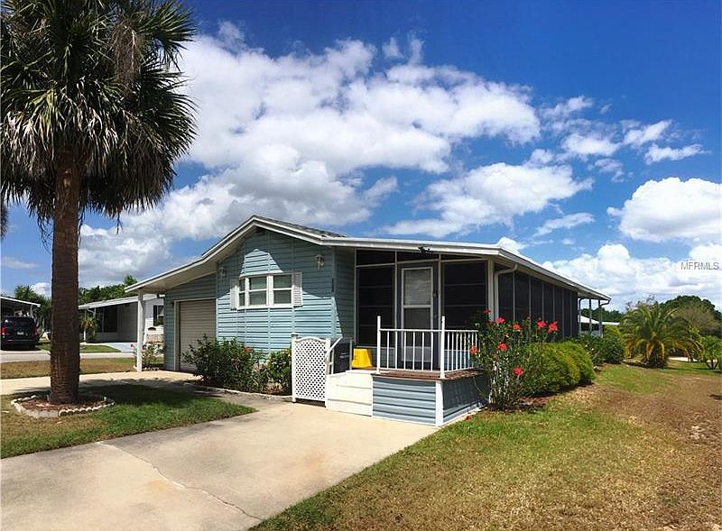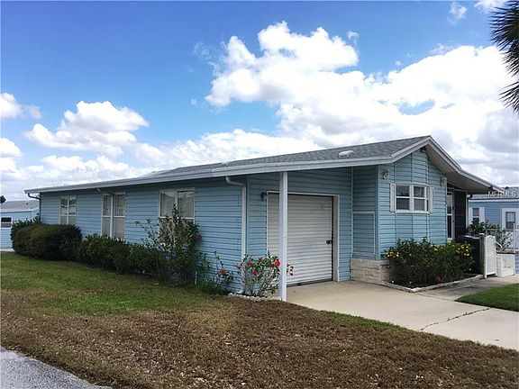 Live the Florida lifestyle in this cozy and well-maintained manufactured home located in the beautiful water front gated community of BASS LAKE. Although it is a manufactured home, YOU own the land. NO LOT RENT! Close to shopping, restaurants, and only minutes from Disney, this home sits on a premium corner lot less than a block away from the community clubhouse, pools, hot tub, etc. Fully furnished and ready to move in. This home is perfect for snow birds, retirement living, or as a turnkey investment property. This home also comes with an oversized 3 car garage for workspace or storage, a covered back porch and a comfortable and relaxing Florida room. Enjoy time at the clubhouse with the numerous social events, relax at the heated pools and/or hot tub or play shuffleboard or horseshoes in the recreation area. For those who like fishing and nature, this waterfront community also comes with lake access through a private dock, a fishing pier and nature area with picnic tables and a wonderful view of Lake Davenport. For boat owners, the community also comes with private and locked storage space near the lake.