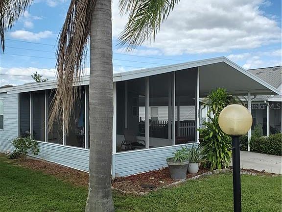 Now is your chance to own this beautiful home. Low-maintenance manufactured home in the Lakefront Community of International Bass Lake! This 2-bedroom, 2-bathroom home features a bright open floor plan, and living/dining room combo. The Large living area and dining area provides lots of room for entertaining. Screen front porch is huge. New AC. New Flooring. New Kitchen sink. New Light fixtures. New paint. Huge Shed. All appliances and washer and dryer included. Lakeside at Bass Lake is a highly desirable part of International Bass Lake Resort, a diverse community with multiple styles of homes. Located in the Four Corners area on Old Lake Davenport, it is convenient to local theme parks, restaurants, shopping, and golf, with easy access to Hwy. 27, Hwy. 192 and Interstate-I 4. Bass Lake features gated access, two pools (one solar heated), hot tub, private community dock and boat launch, club house with exercise room, pool tables, horseshoe pits, shuffleboard courts, billiards room, and offers locked private storage for your boat/ RV. LOW HOA with lawn care, WATER, sewer and trash included. Perfect for first time home buyers, 'downsizers', investment property, and for short term rental use.