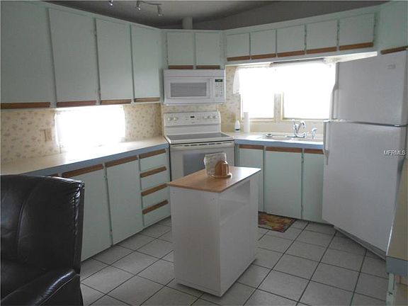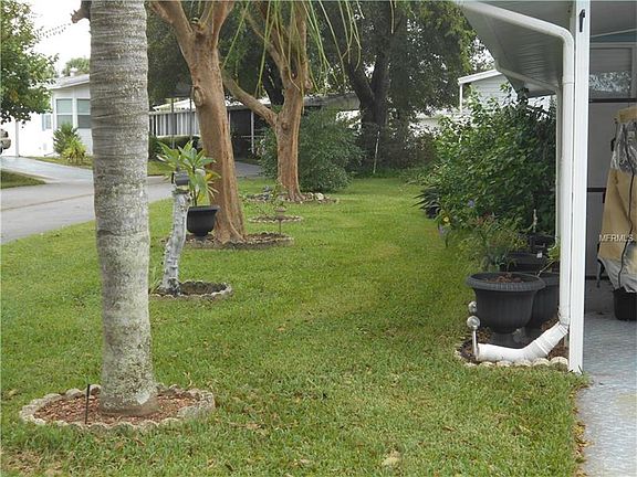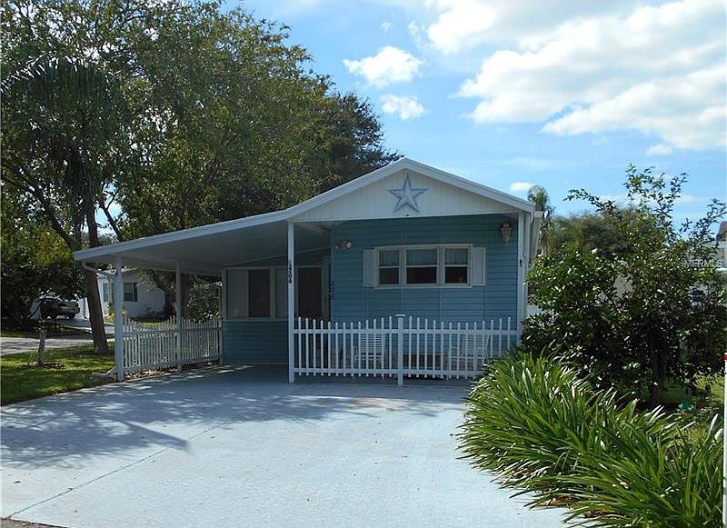 Here's the deal of the day! An affordable home AND you own the land. Don't let this square footage fool you. This home is wide open and easy to heat. Lots of potential in this home. This one bedroom home has a 2nd bedroom set up without a closet; however, there is plenty of room to install one. Vinyl and ceramic flooring throughout. The kitchen (with an island and a smooth top stove) faces the front of the home. The bathroom has been remodeled and offers a 2-seat shower. The 11x12 bonus room, one you could turn into ANYTHING (2nd bath, another bedroom, game room) houses the laundry. The carport allows room to park your own golf cart and the home is nicely landscaped, has a "various citrus" fruit tree, and an adorable 6x12 front porch. This is a great buy! Bass Lake is a gated community on a 175+/- acre lake with a private dock and boat slips. It features two heated pools, horseshoe pits, shuffleboard courts, billiard room, and card room. The HOA fees include water/sewer/trash/lawn mowing. Remember, there is no lot rent as you own the land in this park.